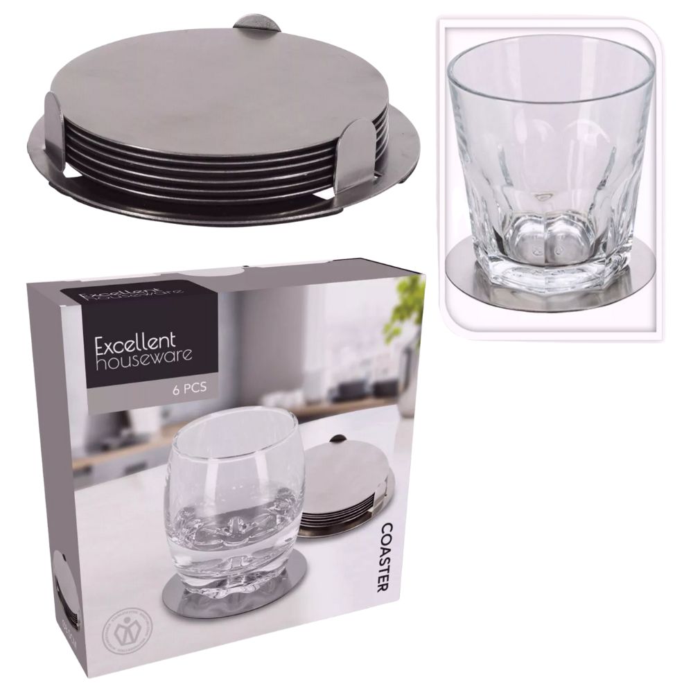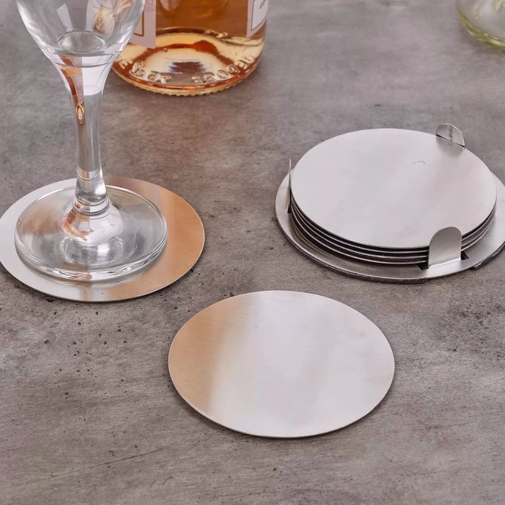 Coasters Set of 7 With Holder Cup Coasters Silver Stainless Steel Round