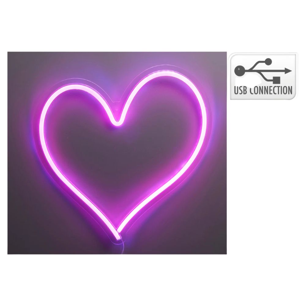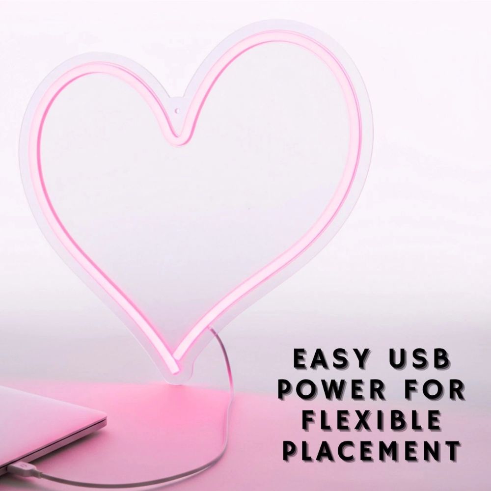 Heart Shape Pink LED Neon Light USB Wall Sign Night Lamp Home Bedroom Decor