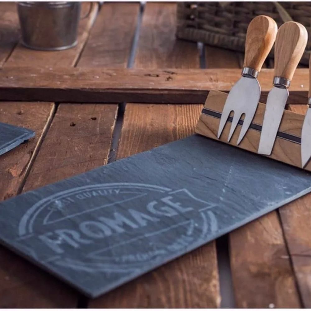 Cheese Board with Knives Slate Stainless Steel 4PCS Serving Tray 30x20x5cm